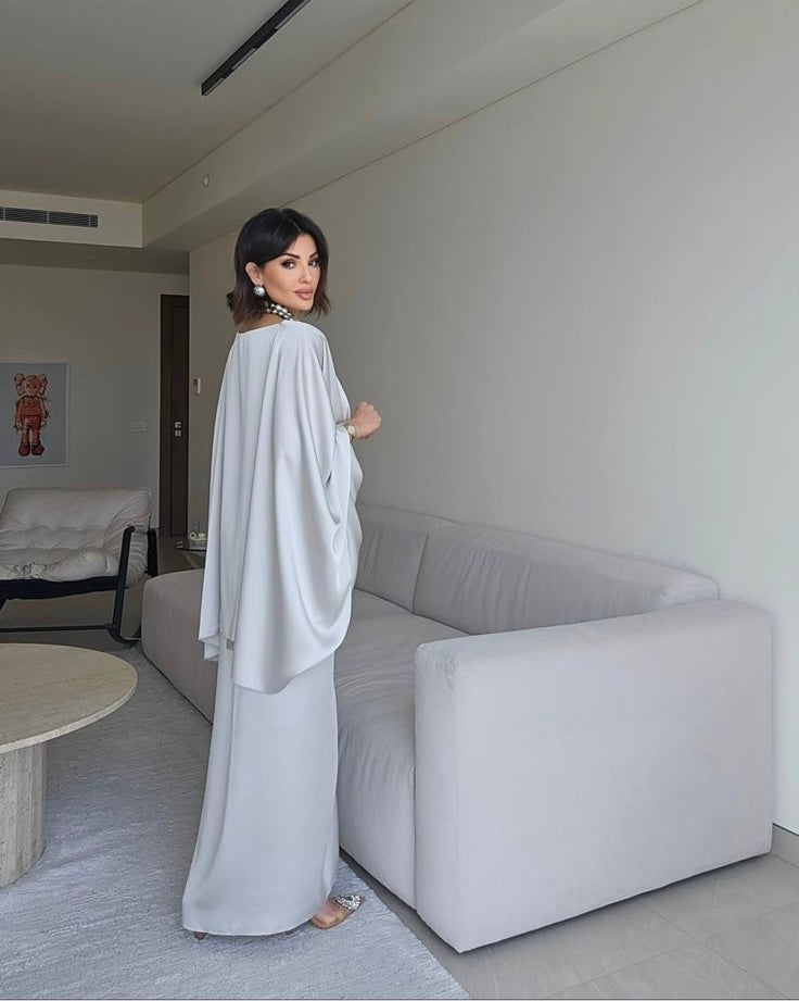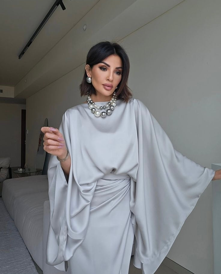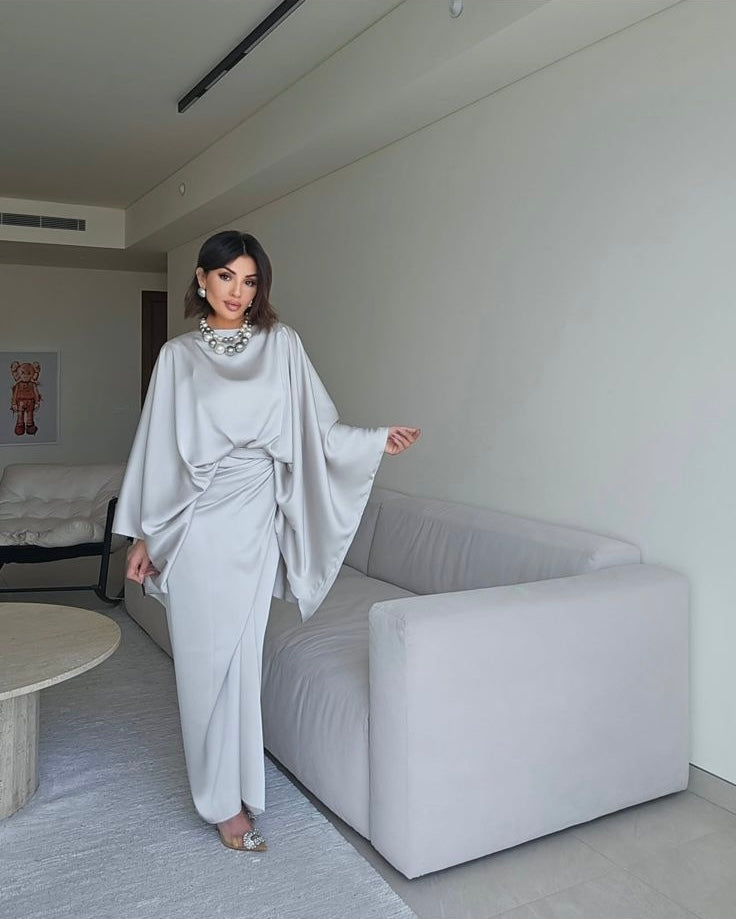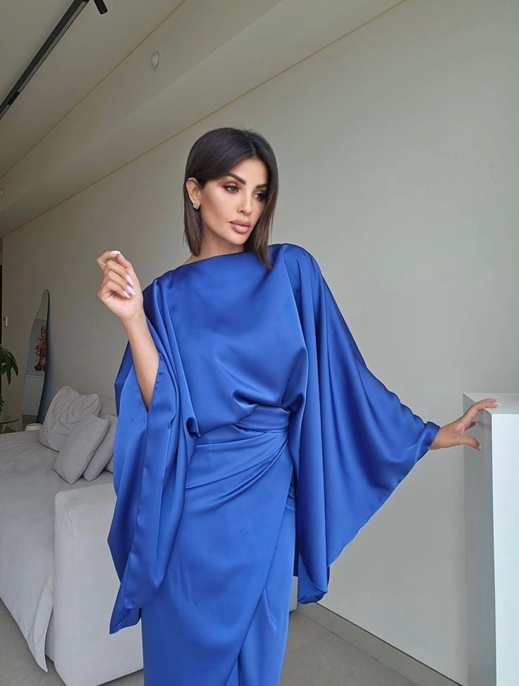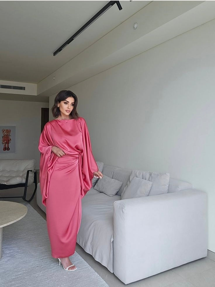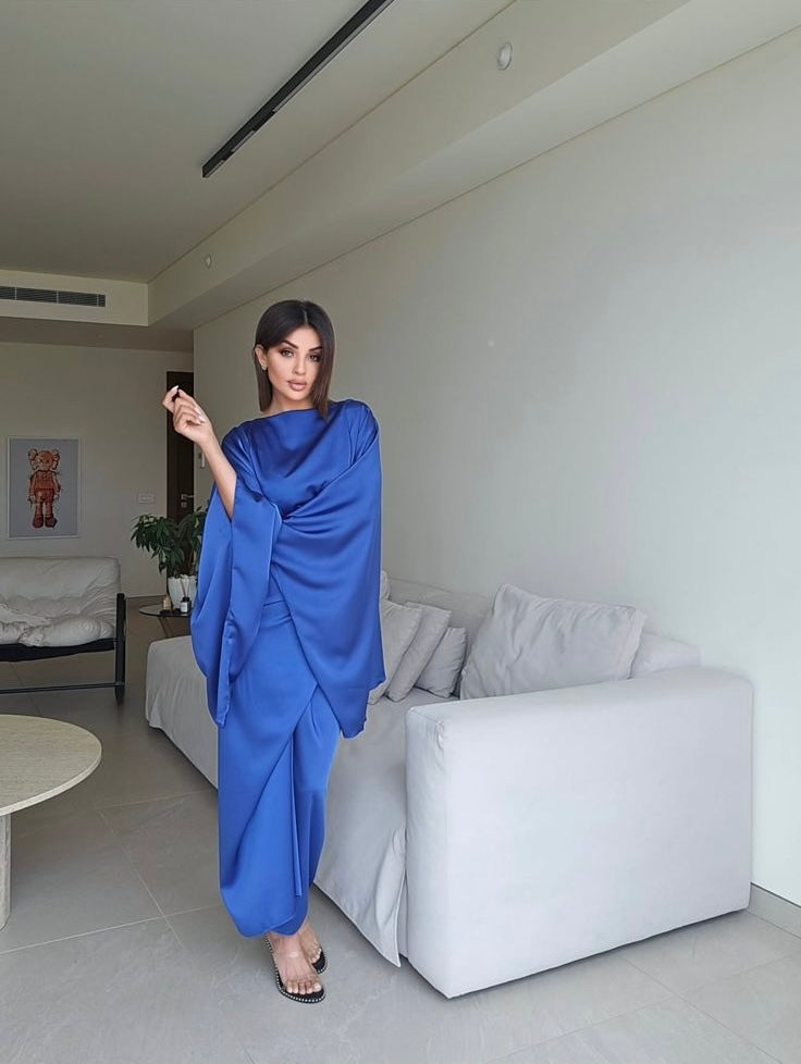 Designed for both comfort and sophistication, this outfit is perfect for festive functions, parties, or elegant evening gatherings. The smooth satin fabric adds a luxurious sheen, while the wrap skirt enhances the silhouette beautifully.